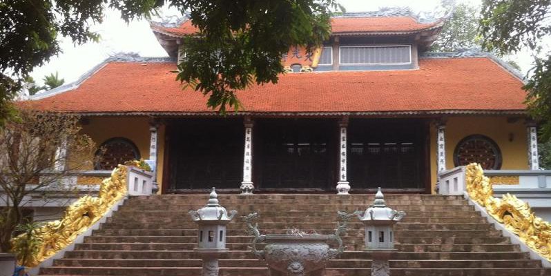 Tòa Tiền đường 5 gian, kết cấu kiến trúc chủ yếu là cột xi măng cốt thép, đỡ bộ vì bằng gỗ, thiết kế theo kiểu “thượng giá chiêng chồng rường”, hạ là hệ thống xà đỡ. Thượng điện 2 gian dọc nối liền với gian giữa của tòa Tiền đường, có 3 bộ vì thiết kế theo kiểu thượng chồng rường giá chiêng, hạ là hệ thống xà đỡ phần mái diêm.
