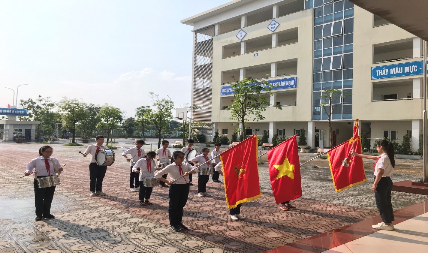 Khi tiếng trống của đội nghi lễ vang lên, tất cả học sinh và giáo viên nghiêm trang đứng dưới lá cờ đỏ sao vàng và bài hát Quốc ca, Đội ca vang lên trong các lớp học.