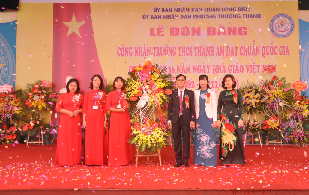 Với những nỗ lực phấn đấu sáng tạo không mệt mỏi của Thầy và trò trường THCS Thanh Am đã đem lại nhiểu kết quả được các cấp lãnh đạo ghi nhận, ngày 02/11/2018 UBND Thành Phố Hà Nội đã ban hành Quyết định số 6049/QĐ-UBND về việc công nhận Trường THCS Thanh Am, phường Thượng Thanh đạt chuẩn Quốc Gia, thay mặt lãnh đạo UBND quận Long Biên, đồng chí Đinh Thị Thu Hương - Quận ủy viên - Phó chủ tịch quận trao Bằng công nhận trường chuẩn Quốc Gia, đồng chí Ngô Mạnh Điềm - Ủy viên ban thường vụ - Chủ tịch UBMTTQ quận; đồng chí Hà Thị Bích Loan - Ủy viên ban Thường vụ - Trưởng ban tổ chức quận ủy có lẵng hoa tươi thắm chúc mừng nhà trường cùng tập thể Giáo viên nhân viên trường THCS Thanh Am.