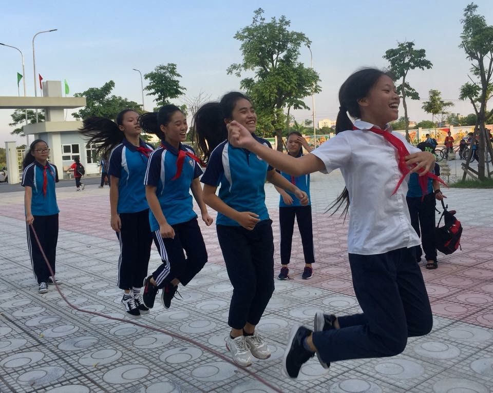 Nhảy dây vào giờ ra chơi cũng là hoạt động của nhiều lớp