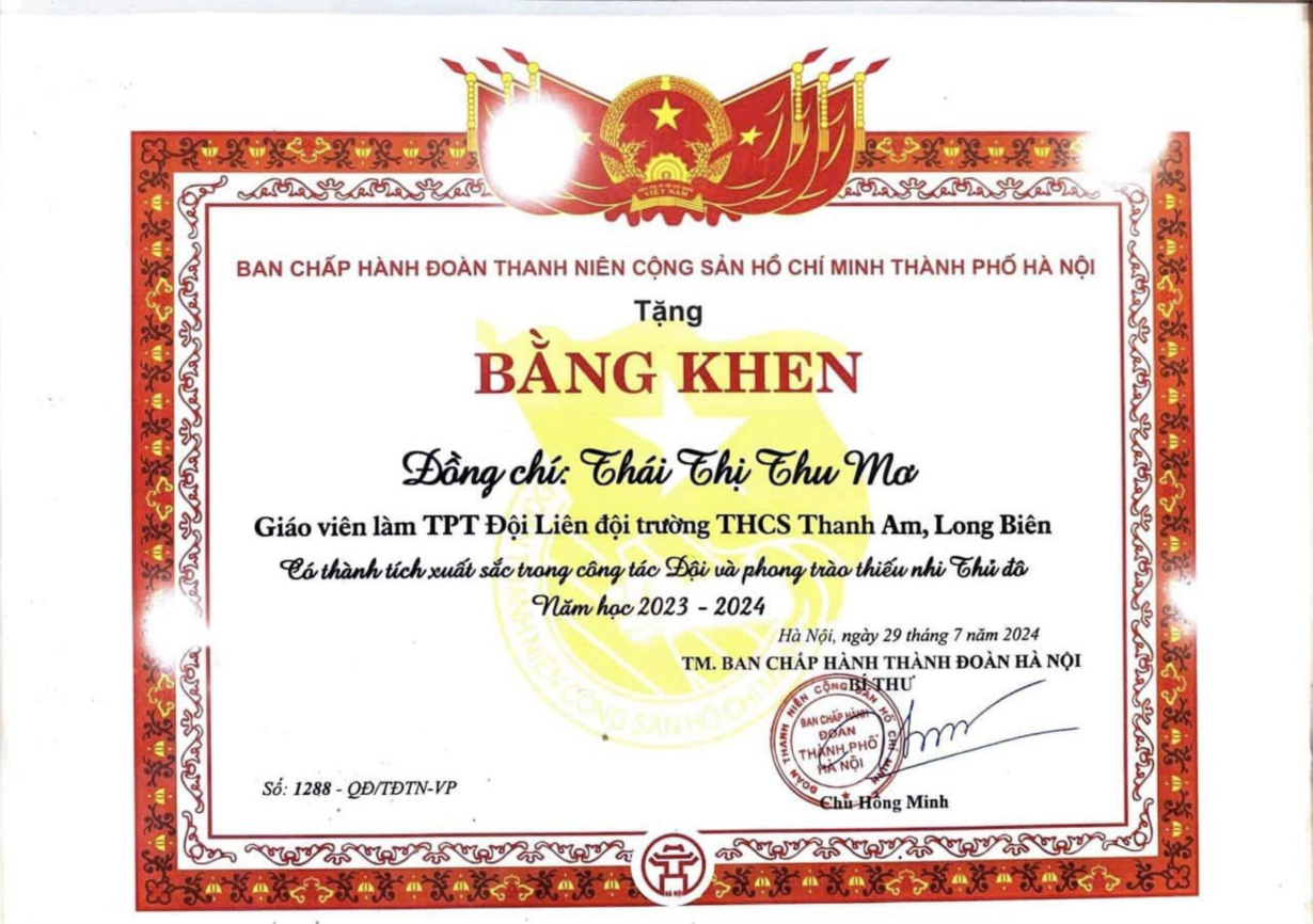 Khen thưởng công tác Đội năm học 2023-2024
