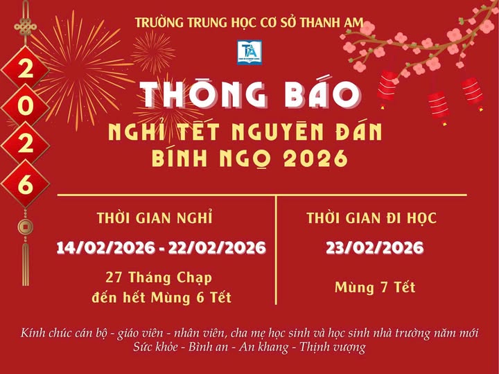 Trường THCS Thanh Am trân trọng thông báo lịch nghỉ Tết Nguyên Đán như sau: